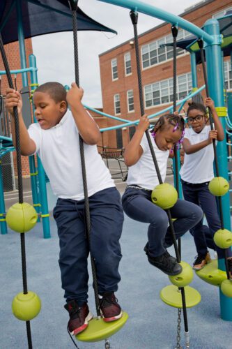 The playground at Payne Elementary School in Washington, D.C. provides a vibrant mix of physical, sensory, and educational play for children ages 2–12. A PlayBooster® structure filled with slides, climbers, ramps, and bridges promotes balance, coordination, and active movement, while DigiFuse® panels weave learning into play with graphics exploring topics like the brain, atoms, and the moon. Inclusive features such as the Sway Fun® glider, tunnels, and sensory panels ensure that children of all abilities can participate fully. Safety and accessibility are enhanced with Surface America’s PlayBound™ Poured-in-Place surfacing, delivering a durable, ADA-friendly foundation that ties the space together as an engaging and inclusive school playground.
